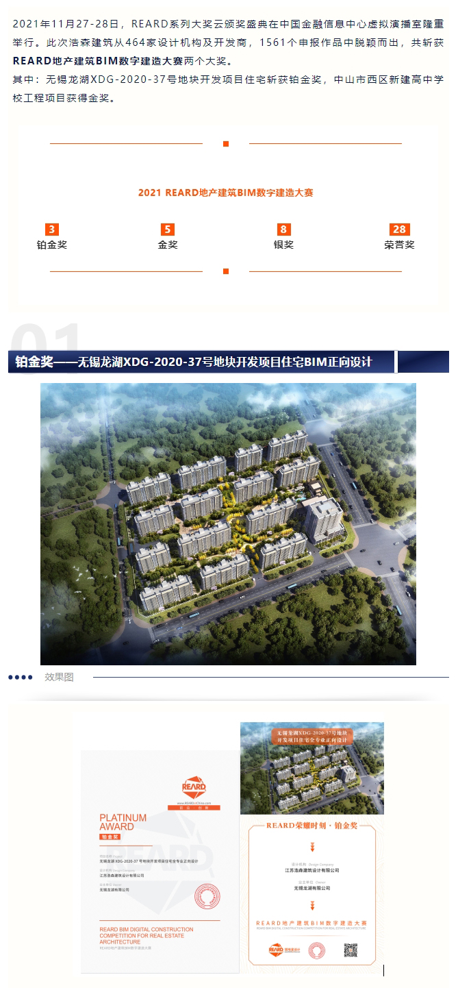 喜讯|浩森设计斩获多项REARD地产建筑BIM数字建造大奖